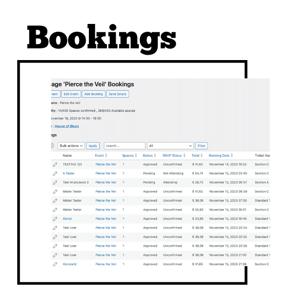 Take full control of your events with a streamlined system that keeps everything organised and accessible. View, track and manage all your bookings in a single, intuitive dashboard — from initial reservations to last-minute changes.